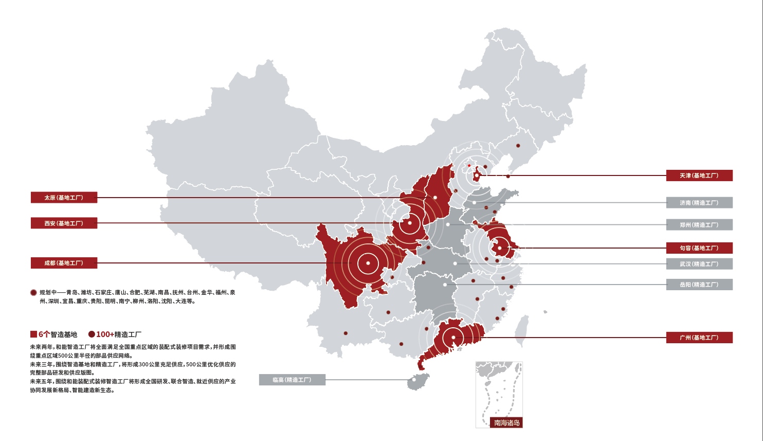同時,以全國六大部品智能制造工廠組成的工業(yè)4.0產(chǎn)業(yè)集群為跳板,通過實體制造工廠和數(shù)字工廠的雙輪驅(qū)動,和能智能制造車間可以滿足全國項目高標(biāo)準(zhǔn)內(nèi)裝建造需要的定制化主材部品供應(yīng)。